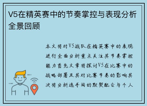 V5在精英赛中的节奏掌控与表现分析全景回顾