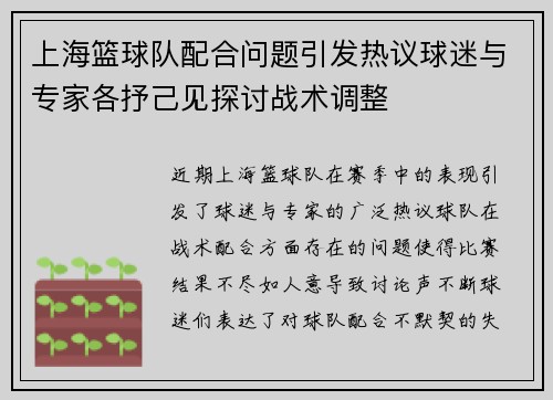 上海篮球队配合问题引发热议球迷与专家各抒己见探讨战术调整